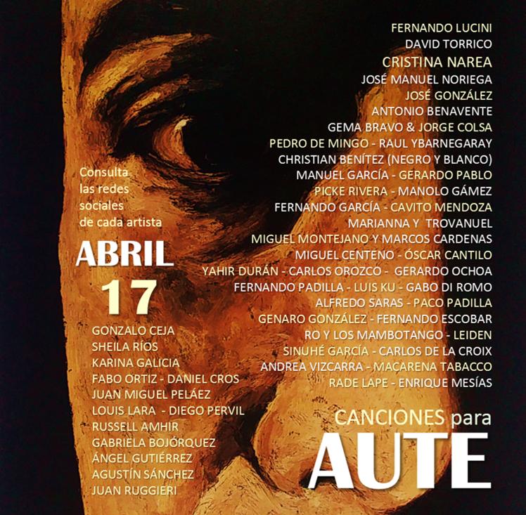 El Viernes 17/04 estaremos a las 20:20 H. tras los aplausos, en el Homenaje a AUTE » Canciones para Aute» en directo desde nuestras redes: Facebook e Instagram.