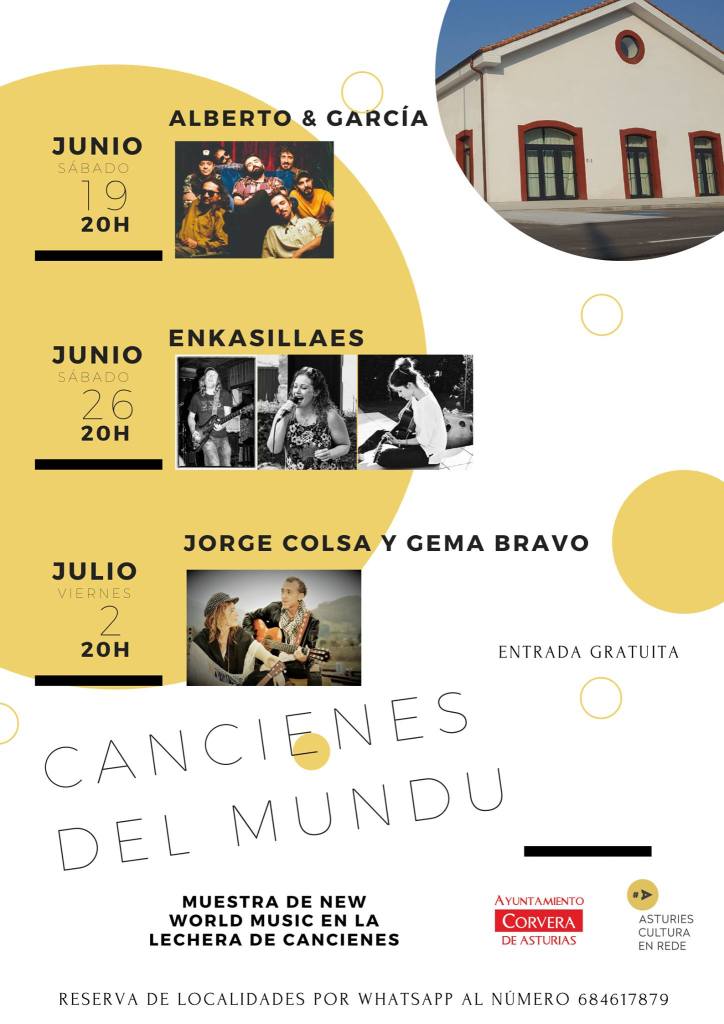 Bajo el título “Cancienes del mundu”, el #AyuntamientodeCorvera inaugura un nuevo ciclo cultural que tendrá como protagonista la música intercontinental de todos los estilos en La Lechera de Cancienes . Alberto & García fueron los encargados de estrenar este nuevo programa con un concierto gratuito –con reserva anticipada de localidades- y nosotros estaremos viernes 02 Julio a las 20 h esperándoos.