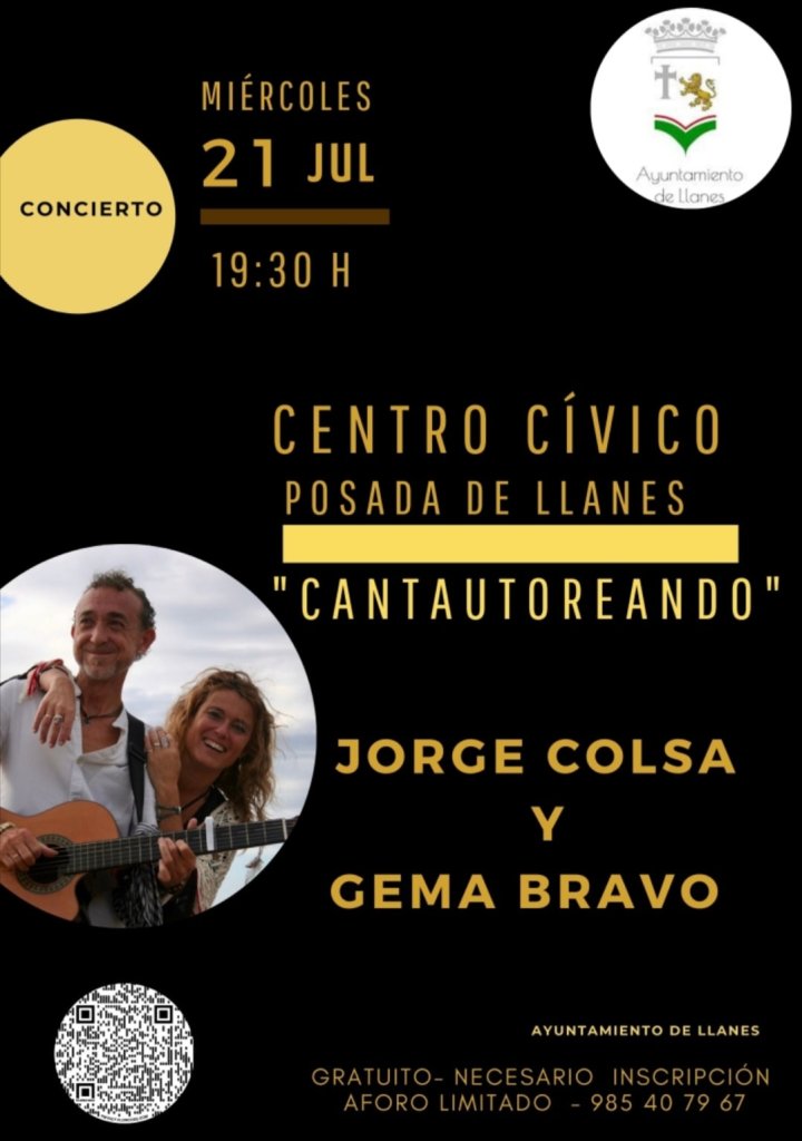 Concierto de Jorge Colsa y Gema Bravo en Posada de Llanes con potro de sus proyectos, esta ez CANTAUTOREANDO, miércoles 21 Julio a las 19:30 en el Centro Cívico de Posada de Llanes.