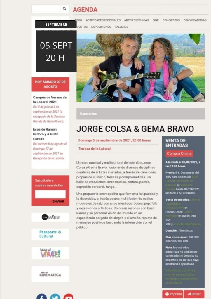 PRESENTAMOS en la👉 LABORAL nuestro proyecto MUSICAL&ARTEFUSIÓN más PERSONAL 🥰el Domingo 5 SEPT 20H, fusionando música🎶 con otras disciplinas artísticas, contaremos con grandes artistas invitados y nos hace especial ilusión que asistas a nuestro sueño🎼.
