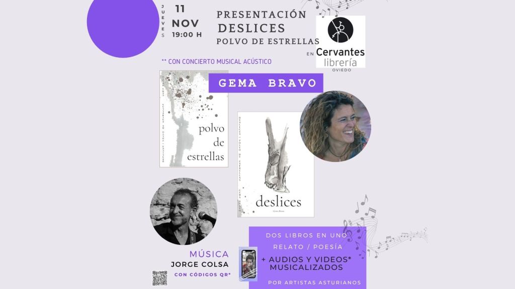Libro experimental que contiene relato y poemario e incluye códigos QR para acceder a audios y videopoemas musicalizados por artistas asturianos. Poesía urbana: erótica, combativa, emocional. Relato biográfico que cuestiona las necesidades y realidades que vivimos; una forma positiva y enérgica de liderar la batalla contra el cáncer. El acto contará con un concierto musical y poético.